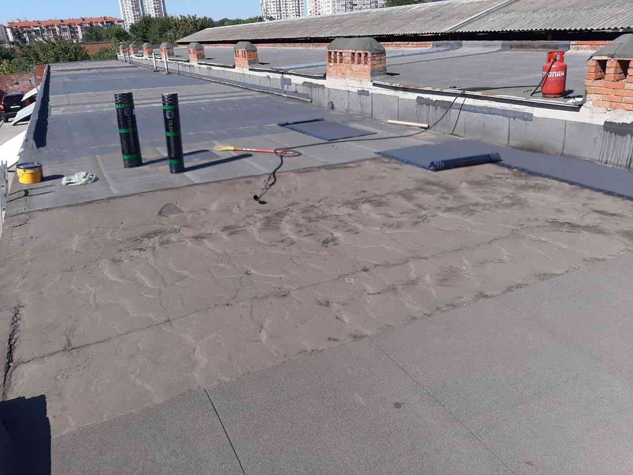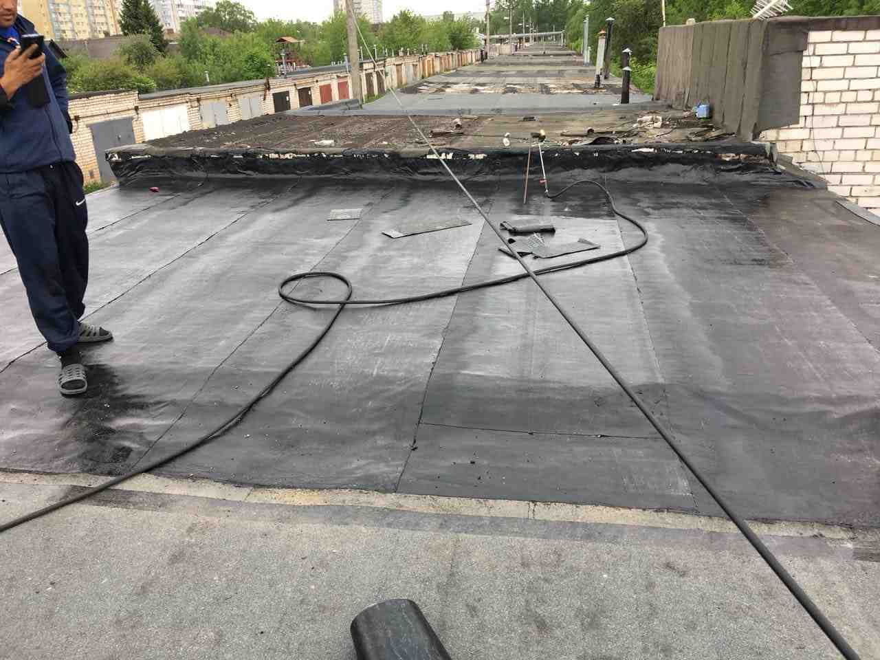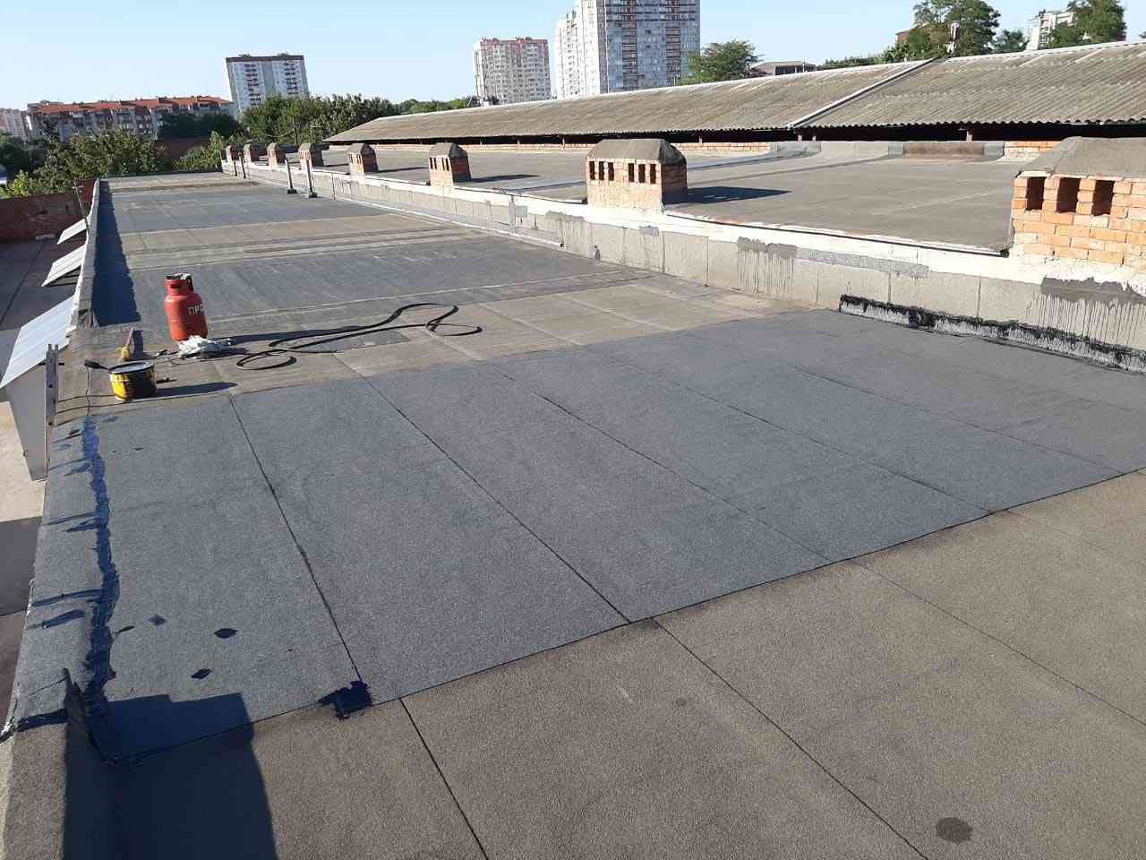 Укладка рулонной наплавляемой кровли